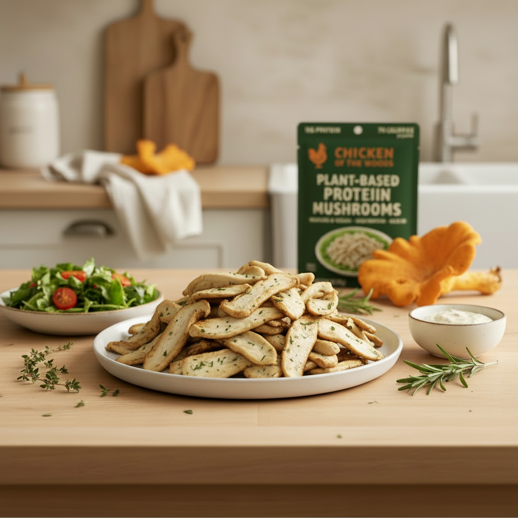 Chicken of the Woods turns mushrooms into juicy, chicken‑style pieces you can toss into bowls, wraps and weeknight dinners in minutes. High in plant protein, big on comfort‑food flavour, easy enough for busy days.