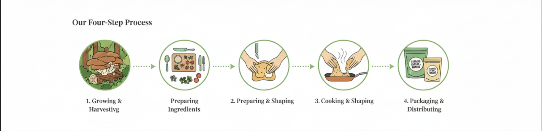 Say you clean, chop or process the mushrooms and combine them with a short list of plant‑based ingredients (oil, seasoning, maybe legumes or grains) to get enough protein and good texture, similar to how plant‑based meats blend proteins, fats, and flavors.